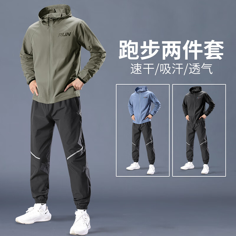 艾伦伯顿运动套装男新款跑步训练服骑行速干衣外套健身户外登山防风衣秋季 军绿两件套 3XL (175-195斤可单件换货)