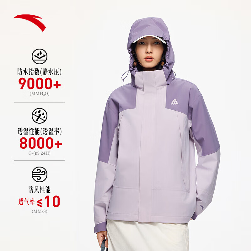 安踏水壳冲锋衣丨大地之壳机能三合一冲锋衣女加绒登山户外防水外套
