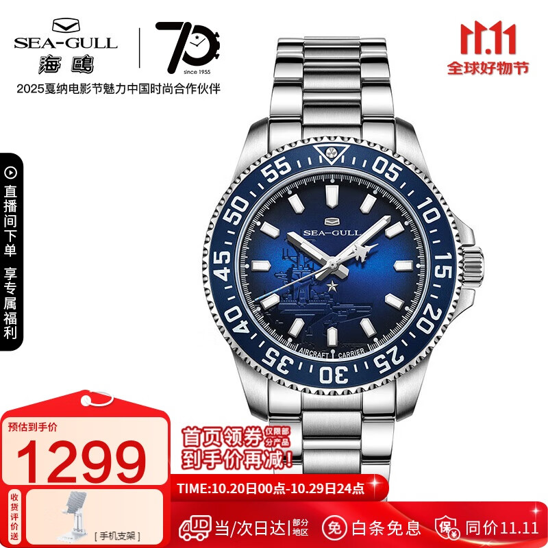 海鸥(SEAGULL)手表男士自动机械表 海洋系列男士手表生日礼物男表潜水表 航母款