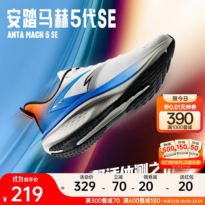 安踏马赫5SE丨跑步鞋男透气PG7缓震体测中考竞训运动鞋112515582