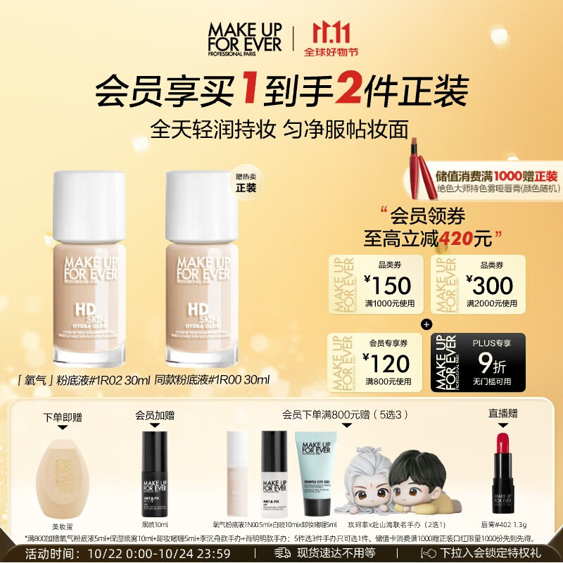 玫珂菲全新氧气粉底液遮瑕持妆自然服帖粉底提亮1R02 生日礼物送女友