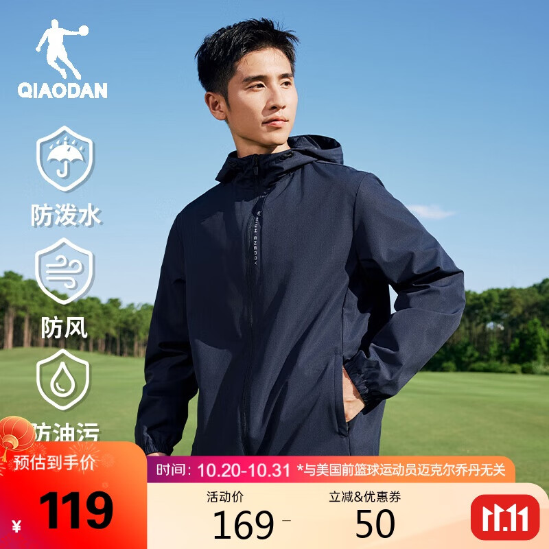 乔丹防风衣男跑步外套男士2025秋季连帽夹克男防泼水冲锋运动服上衣