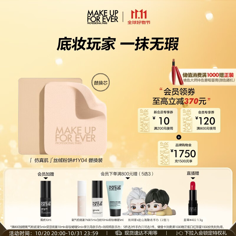 玫珂菲仿真肌丝绒粉饼持妆1Y04替换装遮瑕定妆粉散粉 生日礼物送女友