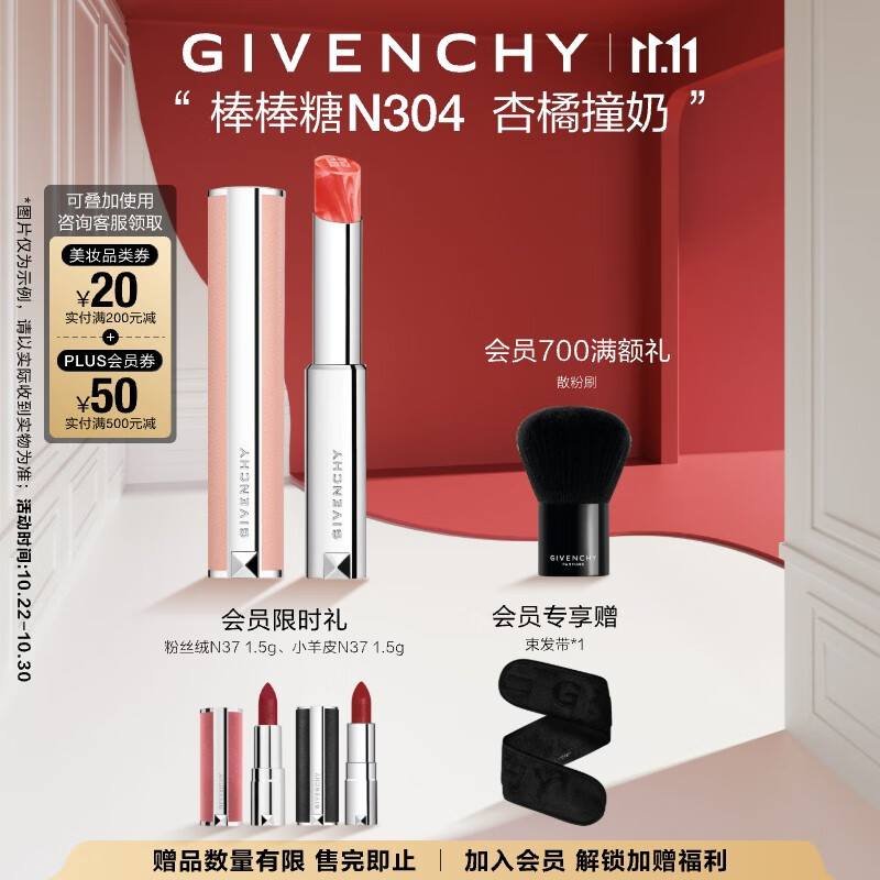 纪梵希(Givenchy)棒棒糖唇膏N304杏橘撞奶色口红化妆品生日礼物送女生双十一抢先购