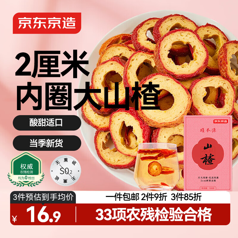京东京造 山楂干100g去核无籽山楂片山楂圈花果茶养生茶茶包酸梅汤原料