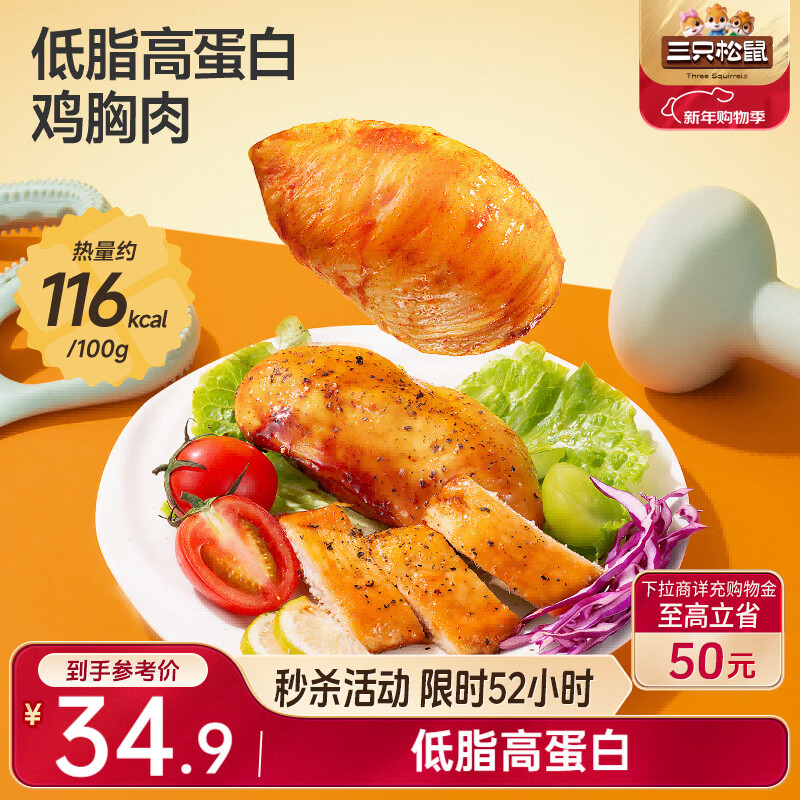 三只松鼠鸡胸肉1000g/20袋低脂高蛋白即食健身代餐速食休闲零食