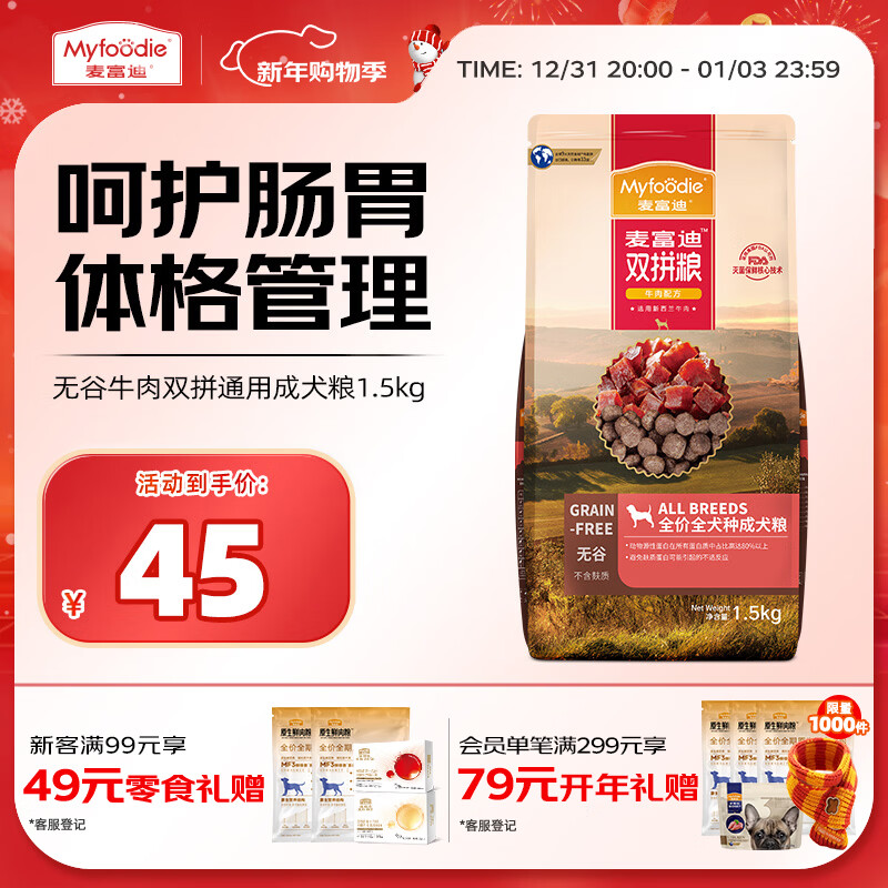 麦富迪狗粮 无谷牛肉双拼狗粮成犬 小型犬中大型犬通用1.5kg