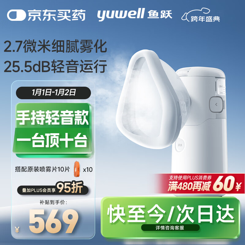 鱼跃(Yuwell)雾化机医用雾化器儿童家用老人可更换式轻音手持M113 含喷雾片*10