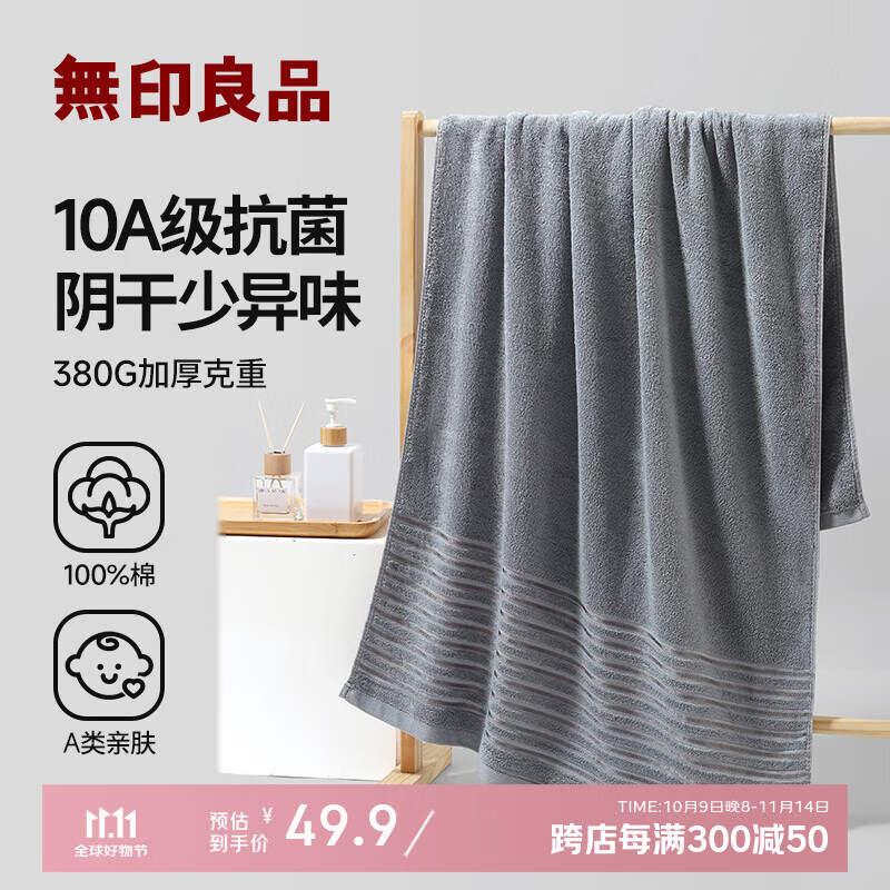 无印良品浴巾10A级抗菌新疆棉加厚100%纯棉亲肤不易掉毛强吸水男士大浴巾