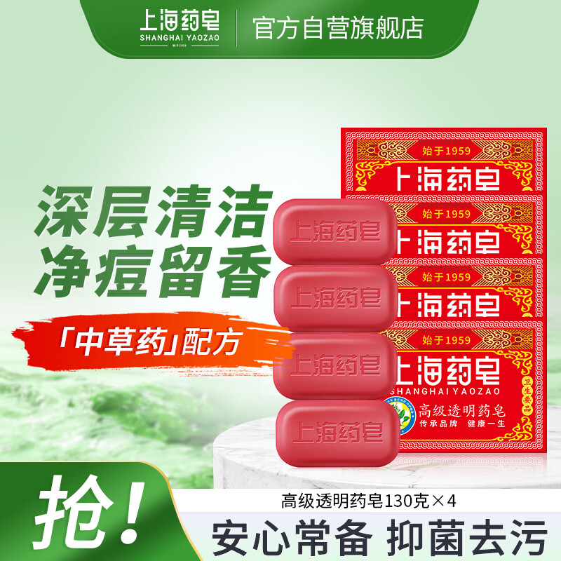 上海药皂香皂肥皂高级透明药皂祛痘止痒控油去异味洗澡沐浴洗手去污130g*4