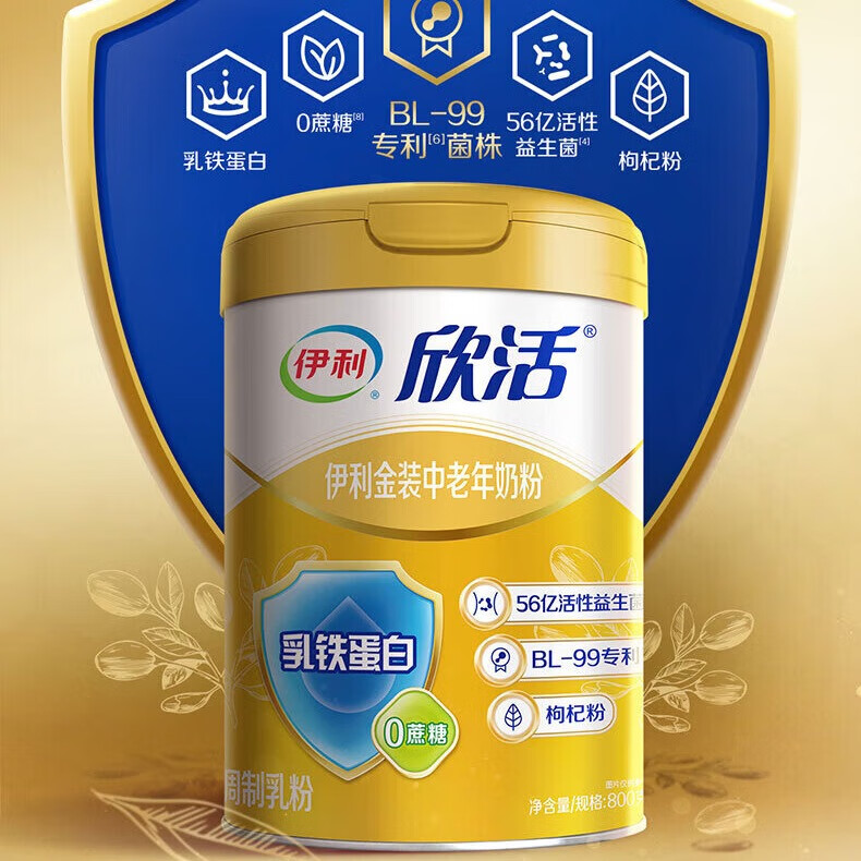 伊利欣活金装中老年奶粉800g 送礼乳铁蛋白高钙蛋白营养 年货节送老人