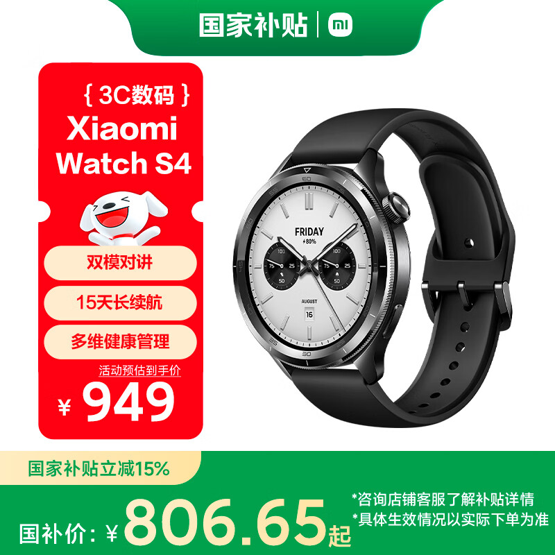 小米(MI)【限时补贴下单立减】XiaomiWatchS4黑色国家补贴汽车钥匙澎湃OS2心率血氧监测小米手表s4男表女表