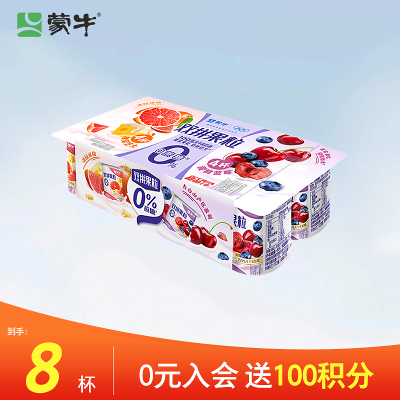 蒙牛(MENGNIU)全程冷链 双拼果粒0蔗糖风味酸牛乳圆周杯 90g×8杯