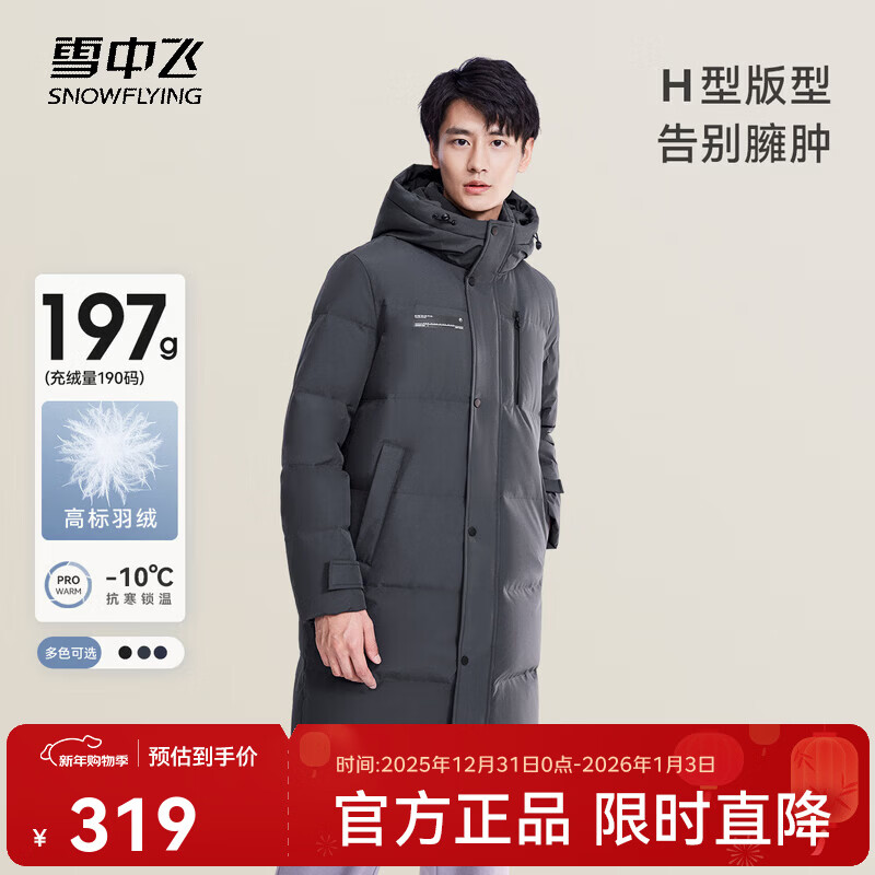 雪中飞秋冬新款时尚休闲舒适廓形男士“H”版型纯色立领连帽羽绒服男 钢铁灰|8224 L 175/96A