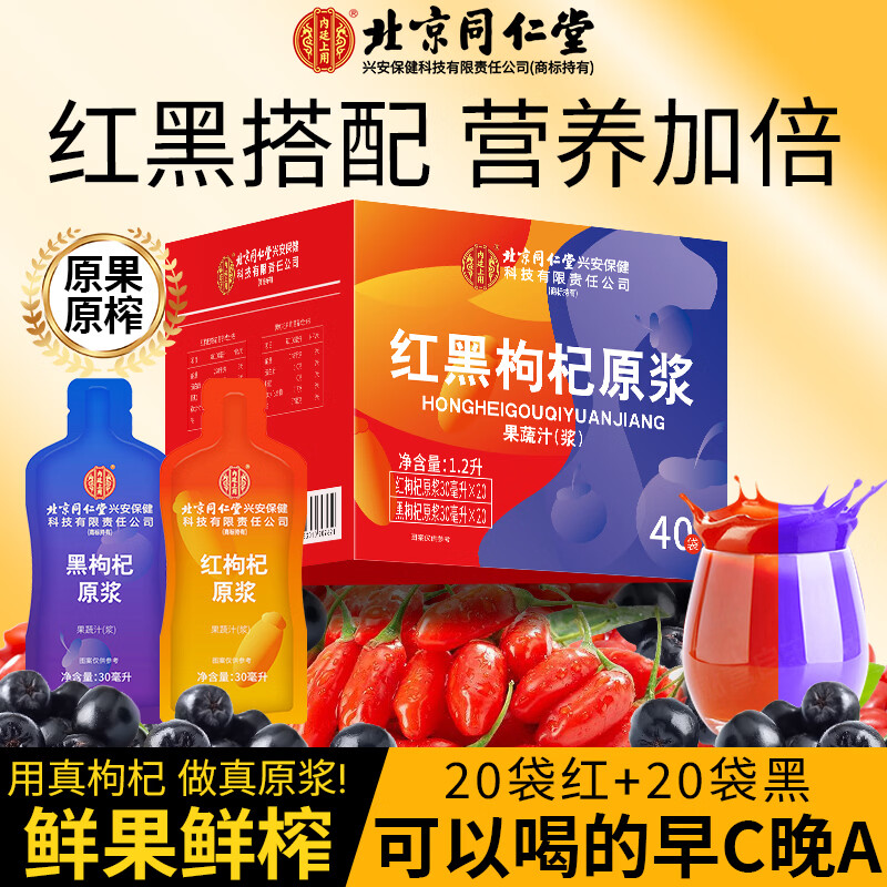 内廷上用北京同仁堂红黑枸杞原浆饮30ml*40袋官方旗舰店正品
