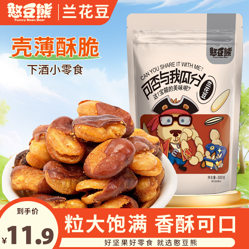 憨豆熊香辣味兰花豆500g/袋 小零食下酒菜香酥馋豆炒货香辣味油炸蚕豆