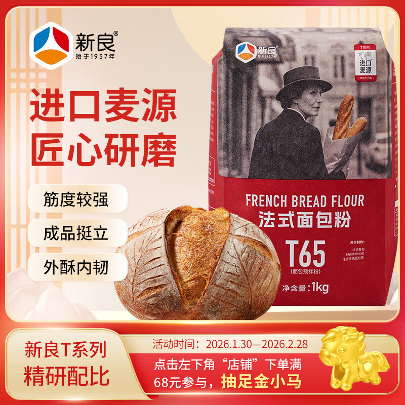 新良大师T65法式面包粉2斤装 进口麦源 法棍餐包布里欧面粉烘焙原料