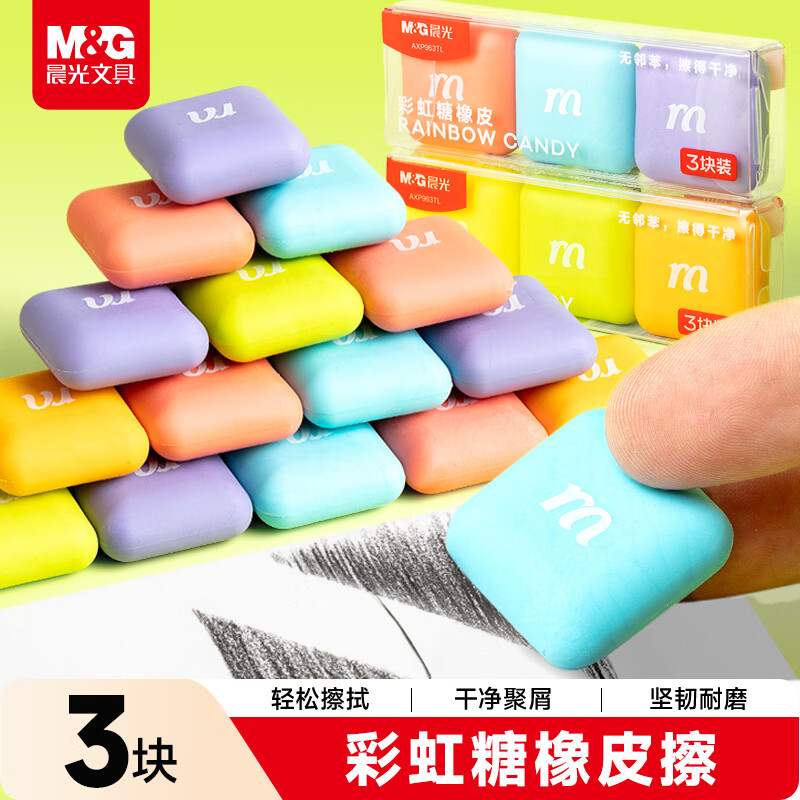 晨光(M&G)文具彩虹糖无屑干净小学生专用铅笔橡皮无邻苯擦得干净高颜值学生文具3块/盒