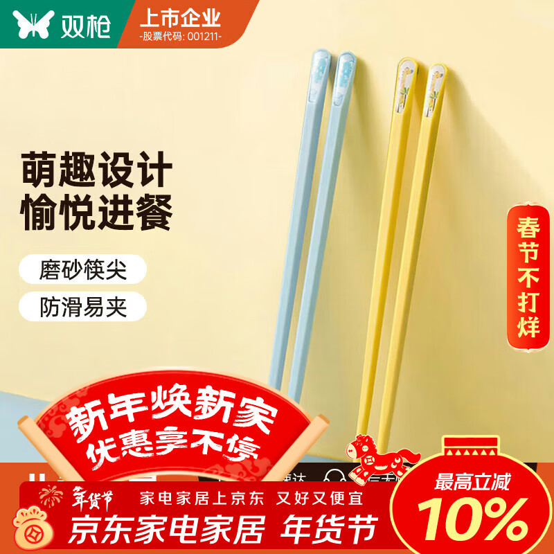 双枪(Suncha)儿童合金筷子家用防滑不易发霉专用两双装 小孩短筷子