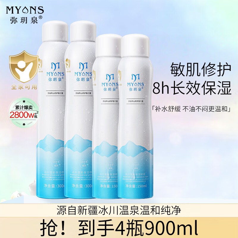 弥玥泉冰川温泉水补水保湿喷雾小分子补水修护爽肤水900ml女神节礼物