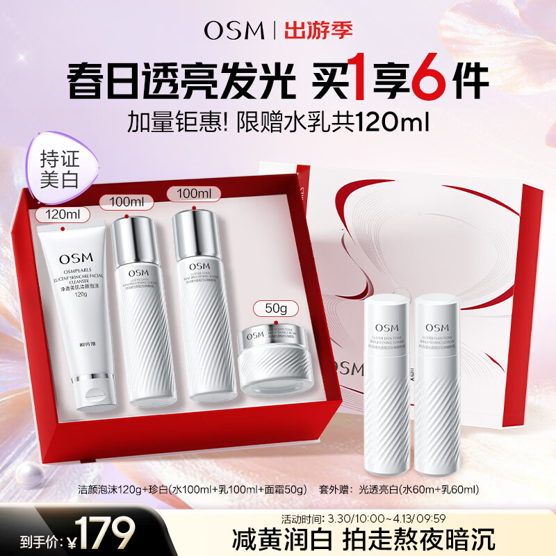 欧诗漫(OSM)珍白护肤品套装洁水乳精华面霜美白补水 生日礼物