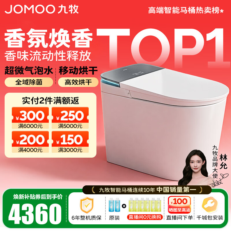 九牧(JOMOO)净界智能马桶S8家用马桶感应翻盖圈除臭除菌坐便器定制水洗烘干 【净界Ultra-ZS860】香氛焕香+移动烘干 390以上选400