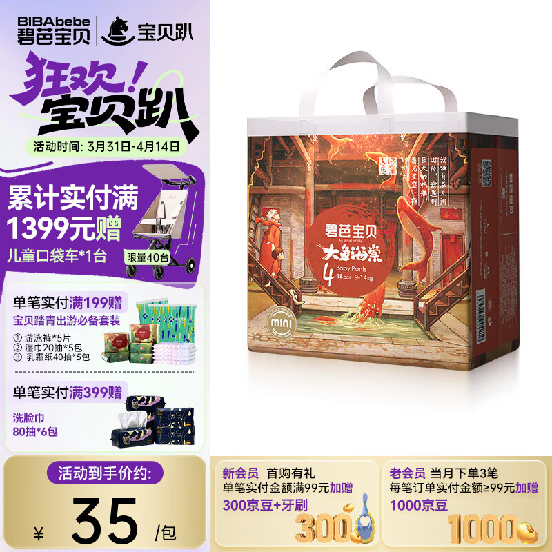 碧芭宝贝拉拉裤大鱼海棠成长裤婴儿尿不湿宝宝训练裤夏季凉爽尿裤 mini装L码-18片(9~14kg)