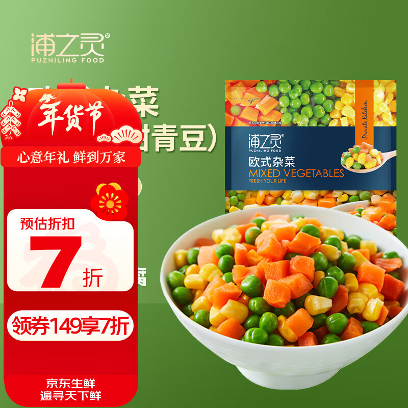 京鲜生 浦之灵欧式杂菜900g/袋 水果玉米粒 进口青豆 冷冻蔬菜年货节