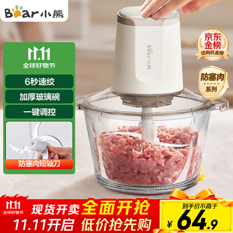 小熊(Bear)绞肉机家用 绞馅机 碎肉机 多功能料理辅食机搅拌机打肉机饺子肉馅蒜蓉机 搅肉机QSJ-E03C8 约2L