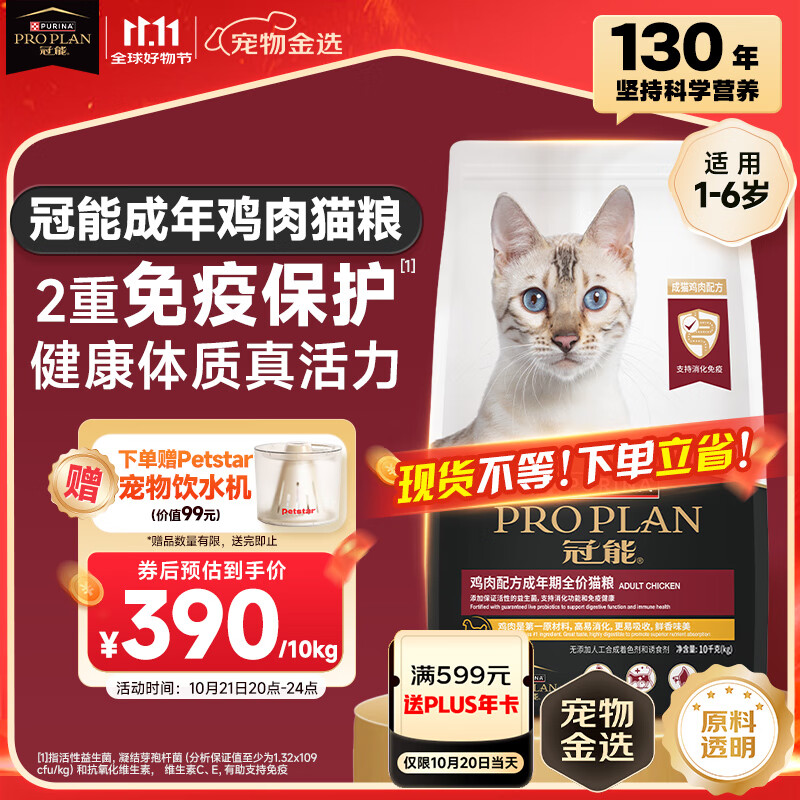 冠能猫粮 成猫猫粮鸡肉味10kg 全价猫粮 稳固免疫【宠物金选】