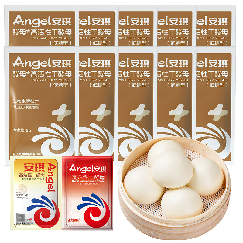 安琪酵母11袋组合 低糖型高活性干酵母6g*10袋+15g1袋包子馒头发酵粉