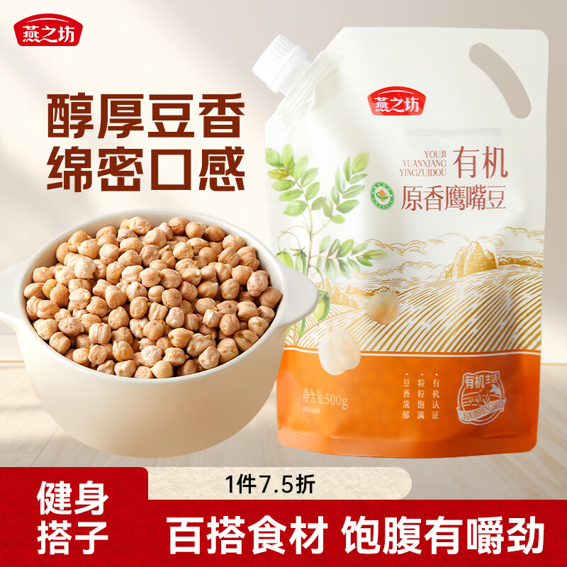 燕之坊有机鹰嘴豆500g 原味无添加代餐沙拉 打豆浆鸡心豆五谷杂粮
