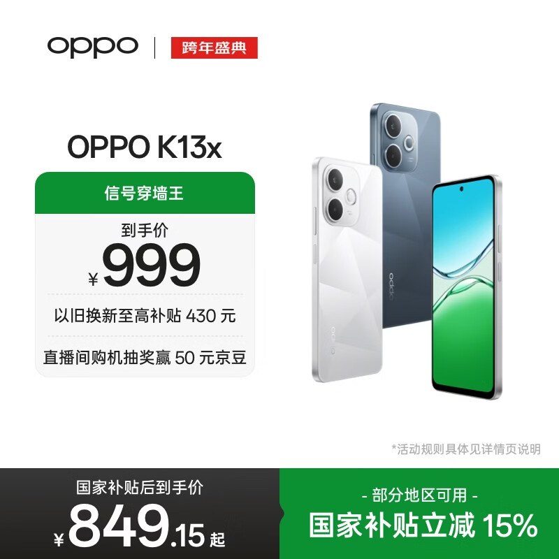 OPPO K13x 8GB+256GB 矅黑 信号穿墙王 天玑6300 IP69防尘防水 新款5G 千元老人智能手机 国家补贴