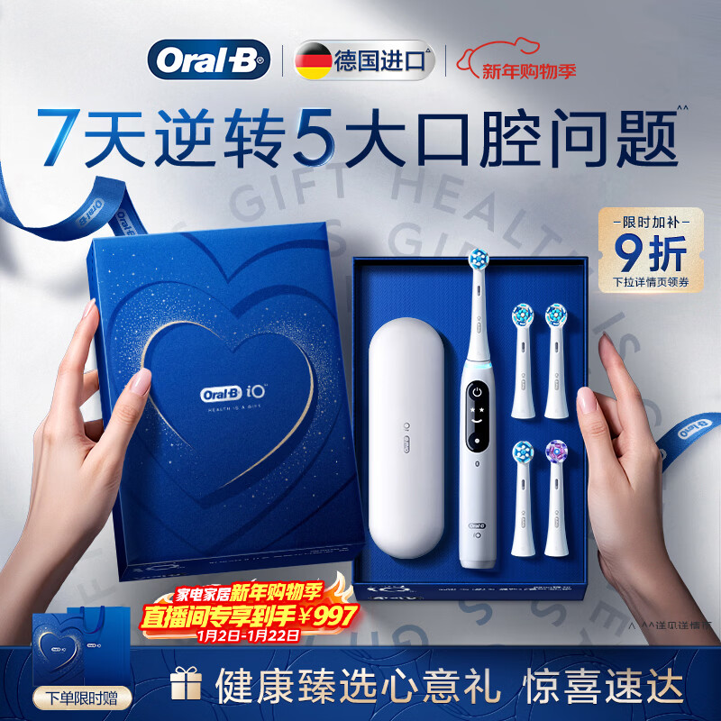 欧乐B德国进口智能电动牙刷iO7大理石白刷头*4深度清洁京东自营热卖榜生日礼物情侣新年礼物