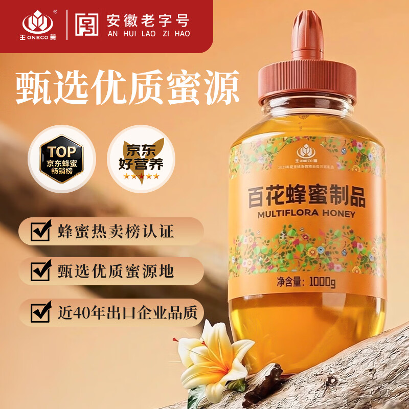 王巢百花蜂蜜 出口转内销蜂蜜1000克 礼物送父母 安徽老字号