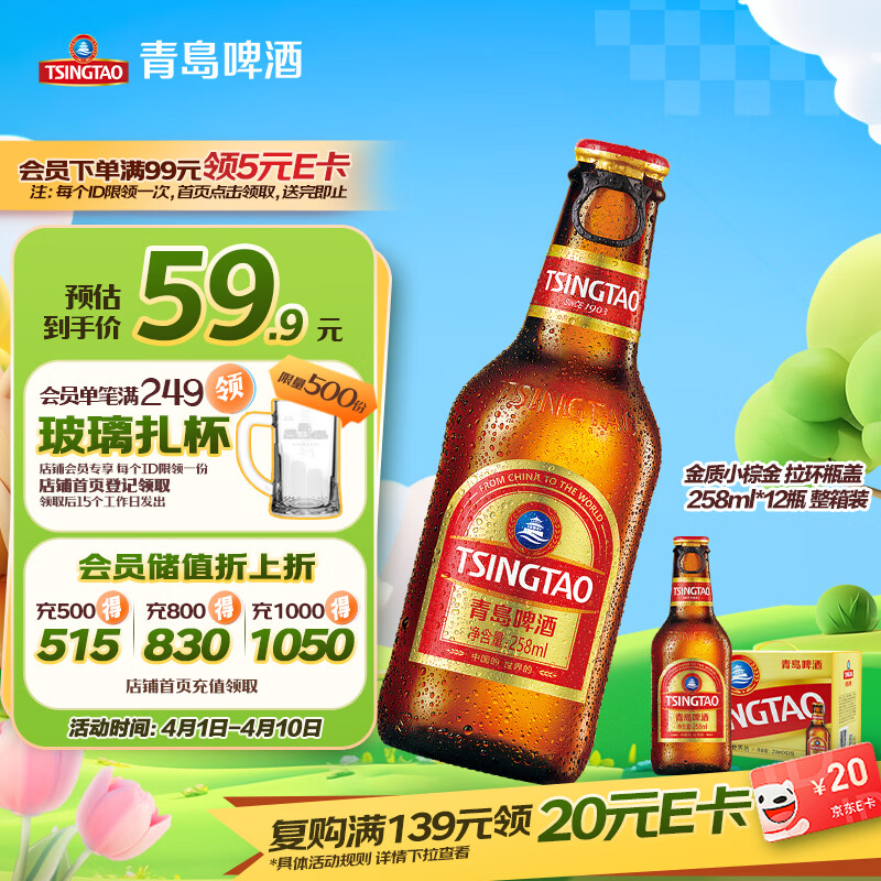 青岛啤酒(TsingTao)精酿小棕金 拉环瓶盖设计 258ml*12瓶 整箱装踏春送礼