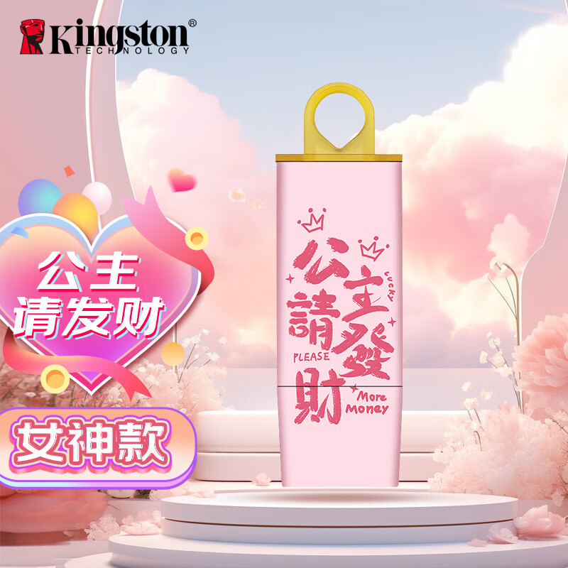 金士顿(Kingston)128GB USB3.2 Gen 1 U盘 DTX 个性化公主请发财印刷款优盘