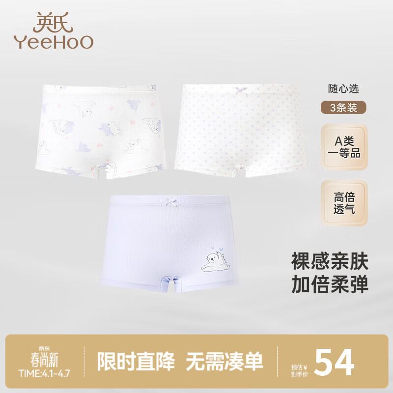 英氏(YEEHOO)儿童内裤棉内裤四角女童内裤中大童平角裤打底短裤不夹屁屁