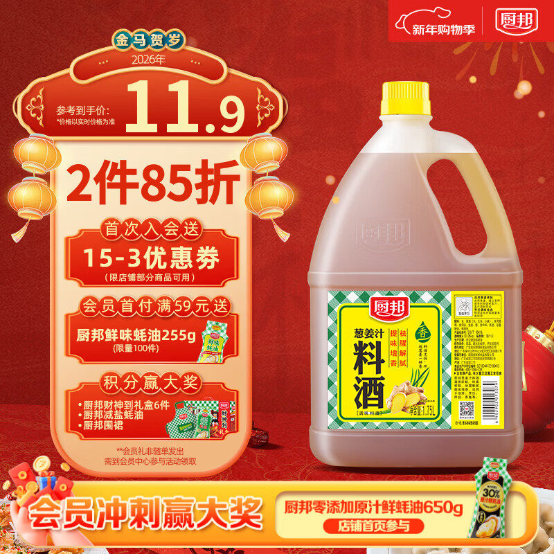 厨邦10度 葱姜汁料酒1.75L 去腥添香传统黄酒酿造 餐饮酒店实惠大桶