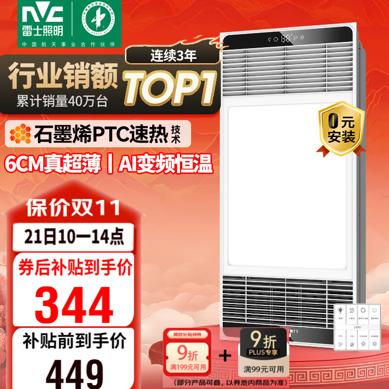 雷士(NVC)政府补贴风暖变频超薄浴霸人感夜灯浴室暖风照明排风换气一体Y417