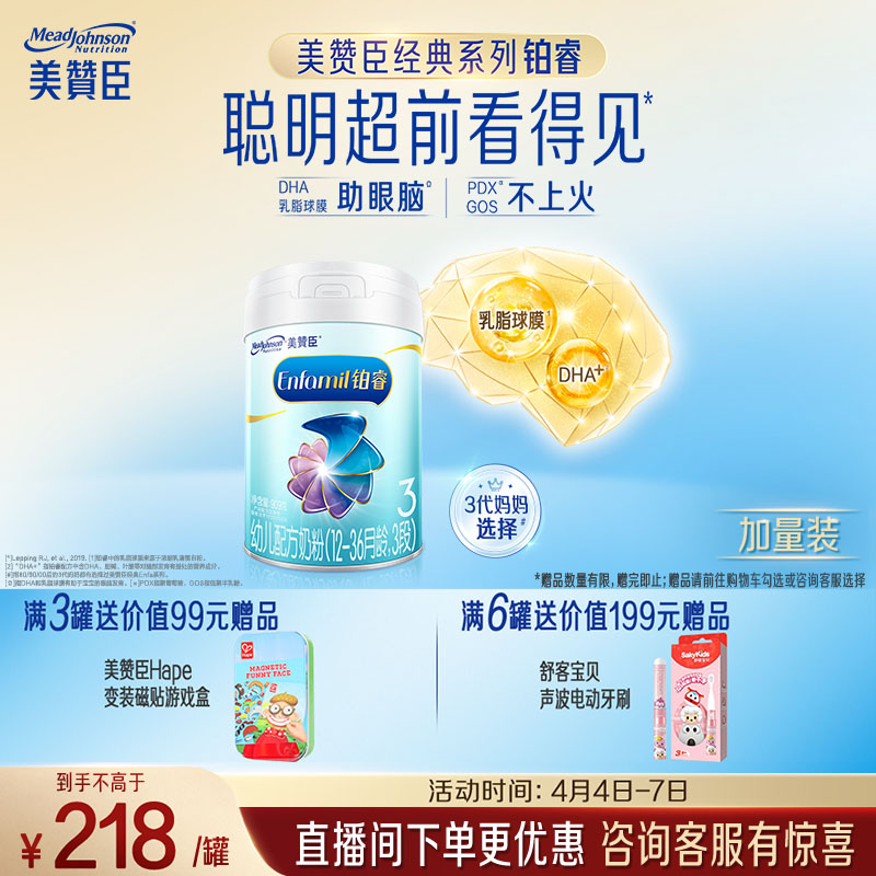 美赞臣铂睿3段 a2蛋白 幼儿配方奶粉(12-36月) 909g*1罐 加量装 DHA