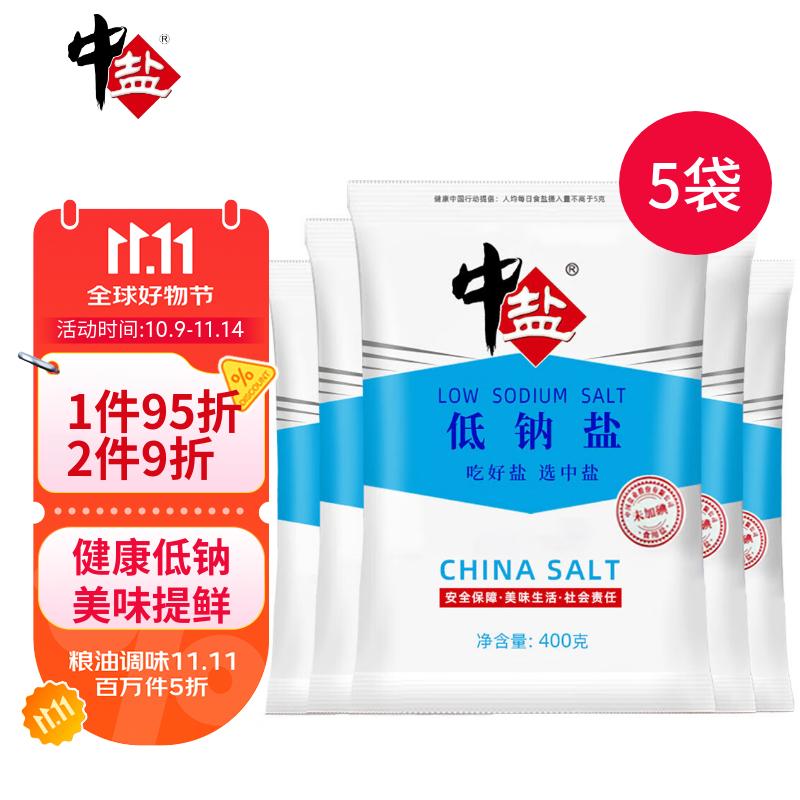 中盐 低钠盐400g*5【未加碘】减盐不减咸 低钠更健康 吃好盐 选中盐