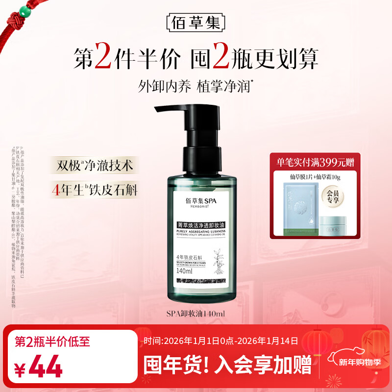 佰草集【第2瓶半价】SPA卸妆油140ml脸唇面部温和卸妆深层清洁敏肌可用
