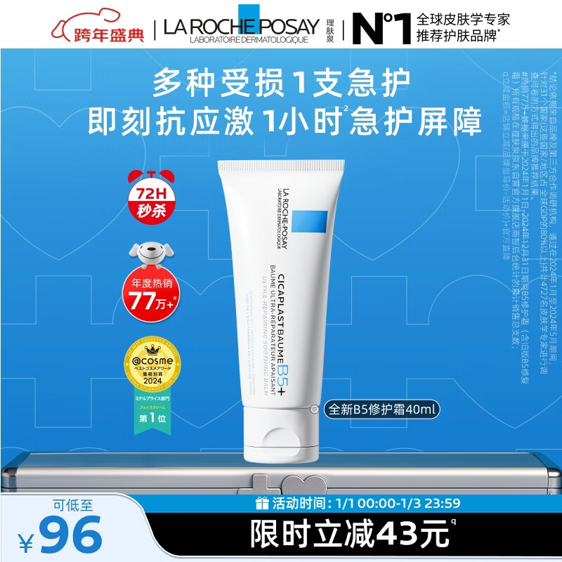 理肤泉全新B5修护霜40ml屏障修护保湿面霜舒缓淡化印痕护肤品新年礼物