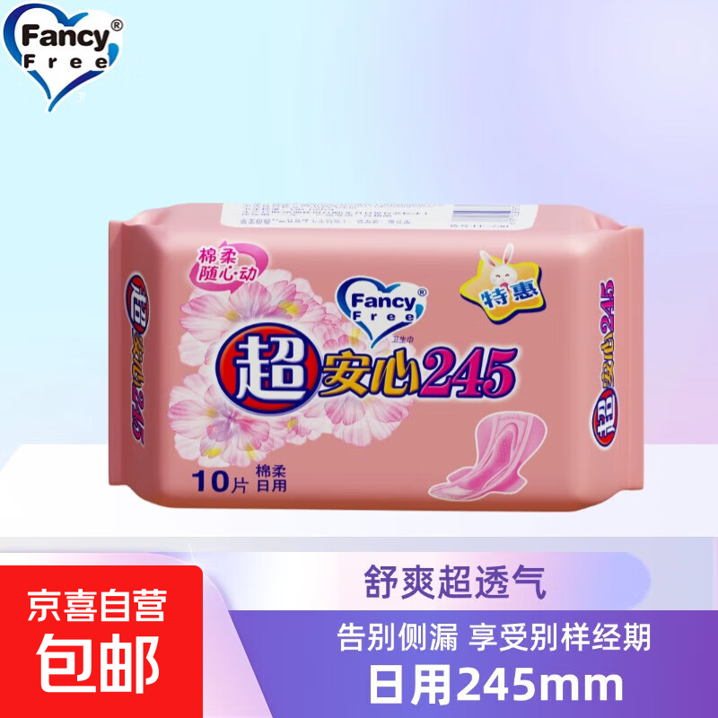 FancyFree日用卫生巾超薄透气贴心呵护防黏腻 棉柔 245mm 10片 绵柔日用卫生巾