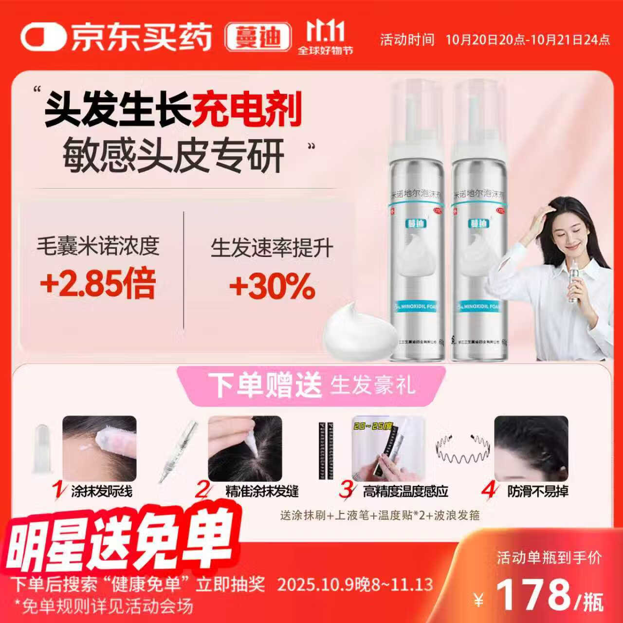 【第二代米诺地尔】蔓迪生发泡沫60g*2(敏皮专属不红不痒不起痘)5%男女士快速防脱育发米洛原液搽剂酊曼迪