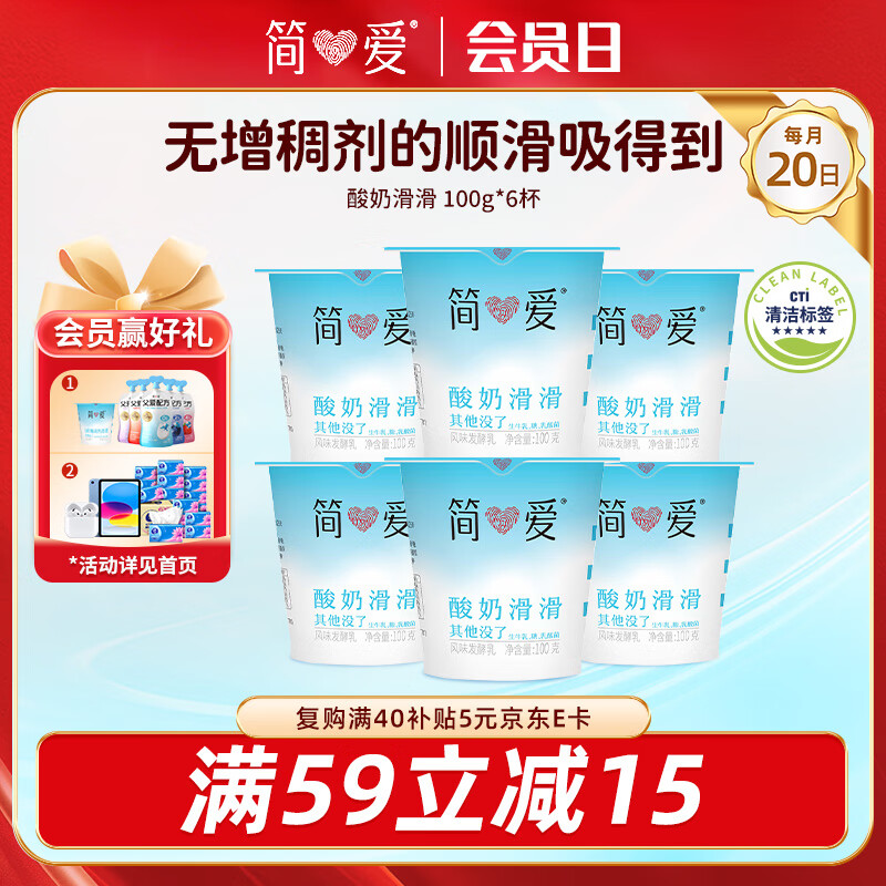 简爱酸奶滑滑酸奶 100g*6杯 生牛乳发酵 下午茶健康零食 低温发酵乳