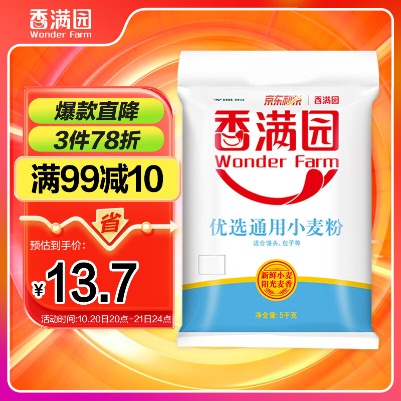 香满园 面粉 中筋粉 优选通用小麦粉 10斤 包子饺子馒头饼手擀面