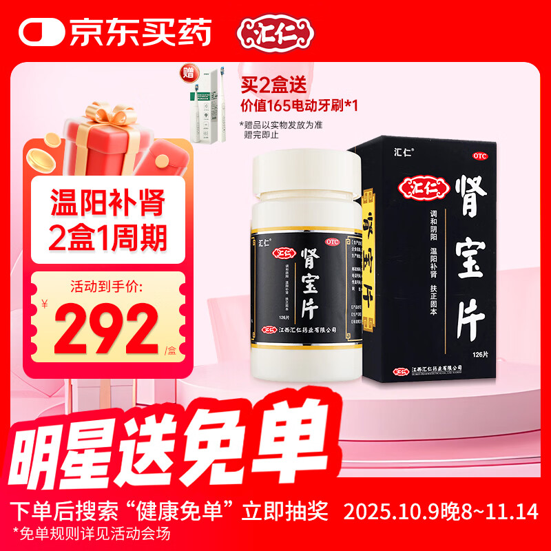 汇仁牌肾宝片 0.7g*126片 温阳补肾 扶正固本 腰腿酸痛 精神不振 夜尿频多 畏寒怕冷 妇女白带清稀 男科用药