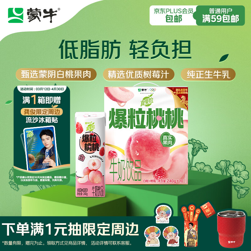 蒙牛真果粒白桃树莓味牛奶饮品笑脸包240g×10盒 健康低脂 龚俊同款